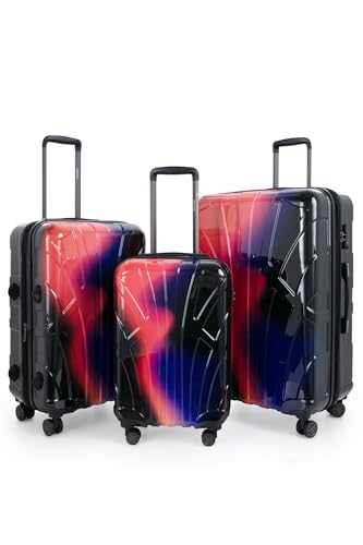 COOLIFE Valise, Valises Rigide Valise Soute, Sets de Bagages Comprend 1 Sac de Voyage et 1 Trousse de Toilette, Cadenas TSA pour Les Voyages, Bleu/Rouge, Set de 3 Valises (24")