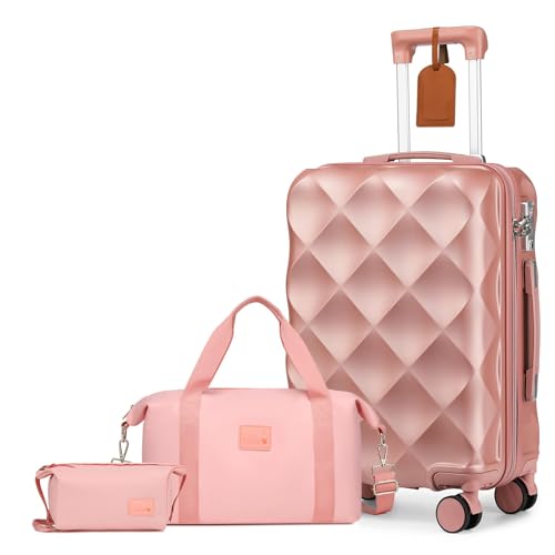 Sea choice Valise Cabine Rigide Motif Losanges Valises Soute en ABS Rigide Trolley Bagage a Main avec Serrure TSA 8 Roues Multidirectionnelles Élégant 55x36x22cm