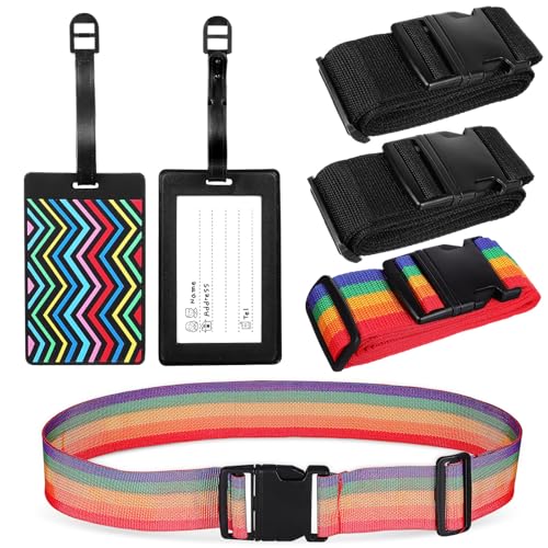 VILLCASE Sangles de Bagage pour Valise Réglables 4 Pièces avec 2 Étiquettes D'identification Verticales Rayées Accessoires de Voyage Pratiques pour Valises Cabine Soute