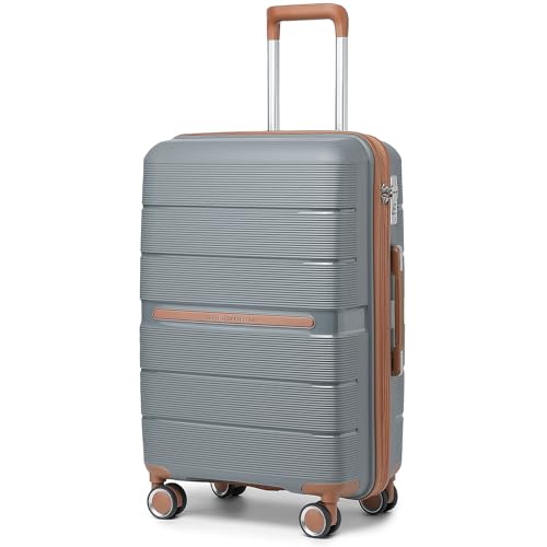 Kono Valise Moyenne Rigide ABS Valise de Voyage a roulettes Ultra Léger Valises Soute 62cm avec Serrure TSA, Gris