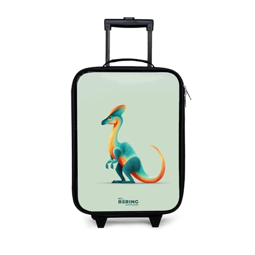 NoBoringSuitcases.com® Valise Enfant 48x31x19 cm Ultra Légère Bagages À roulettes LED pour Enfants Petite Voyage Bagage Bebe Valisette A Roulette Ado - Garçon - Dinosaure -Crête - Vert