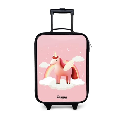 NoBoringSuitcases.com® Valise Enfant 48x31x19 cm Ultra Légère Bagages À roulettes LED pour Enfants Petite Voyage Bagage Bebe Valisette A Roulette Ado - Fille - Licorne - Rose