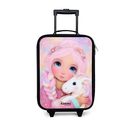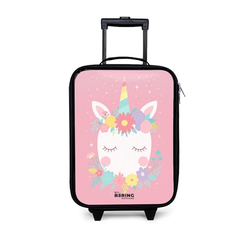 NoBoringSuitcases.com® Valise Enfant 48x31x19 cm Ultra Légère Bagages À roulettes LED pour Enfants Petite Voyage Bagage Bebe Valisette A Roulette Ado - Fille - Rose - Licorne