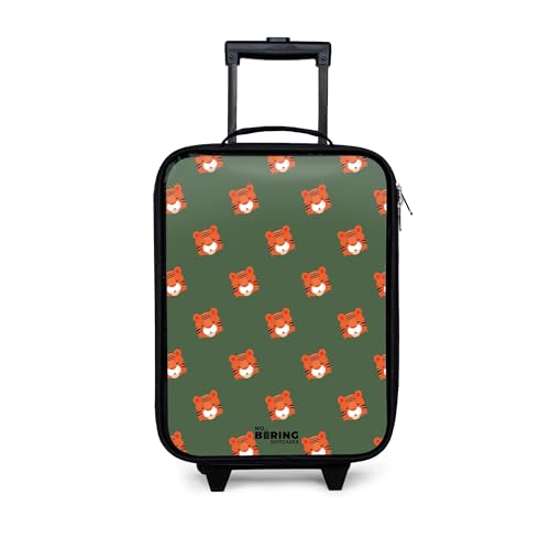 NoBoringSuitcases.com® Valise Enfant 48x31x19 cm Ultra Légère Bagages À roulettes LED pour Enfants Petite Voyage Bagage Bebe Valisette A Roulette Ado - Garçon - Tigre - Vert - Motif
