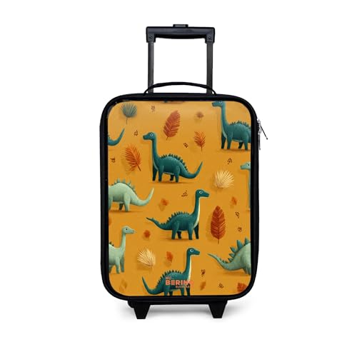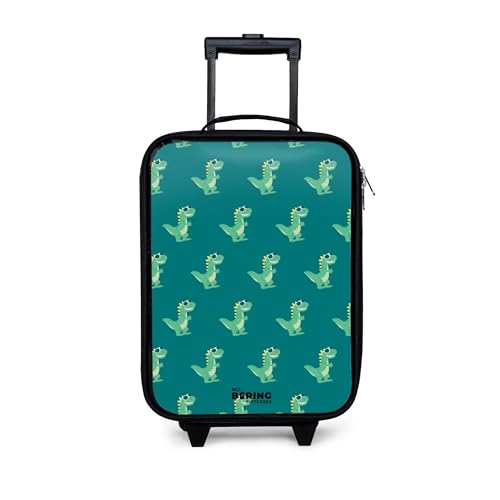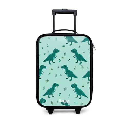 NoBoringSuitcases.com® Valise Enfant 48x31x19 cm Ultra Légère Bagages À roulettes LED pour Enfants Petite Voyage Bagage Bebe Valisette A Roulette Ado - Garçon - Dinosaure - Soleil - Vert