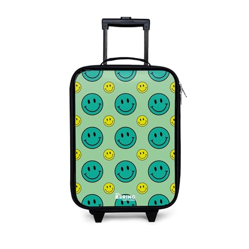 NoBoringSuitcases.com® Valise Enfant 48x31x19 cm Ultra Légère Bagages À roulettes LED pour Enfants Petite Voyage Bagage Bebe Valisette A Roulette Ado - Garçon - Smiley - Vert - Motif