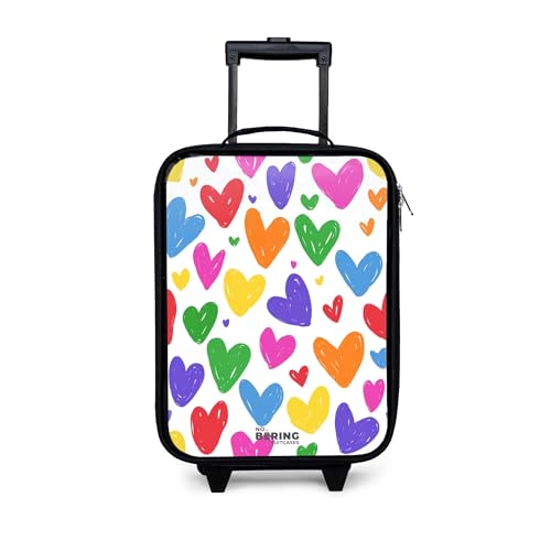 NoBoringSuitcases.com® Valise Enfant 48x31x19 cm Ultra Légère Bagages À roulettes LED pour Enfants Petite Voyage Bagage Bebe Valisette A Roulette Ado - Fille - Cœurs - Motif - Coloré