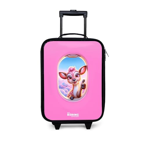 NoBoringSuitcases.com® Valise Enfant 48x31x19 cm Ultra Légère Bagages À roulettes LED pour Enfants Petite Voyage Bagage Bebe Valisette A Roulette Ado - Fille - Girafe - Beige