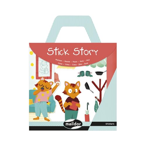 MY MANDARINE AF034C - Valisette Stick'story - 2 DÉCORS 42x14 cm + 4 planches de GOMMETTES repositionnables - MAISON (50 stickers)