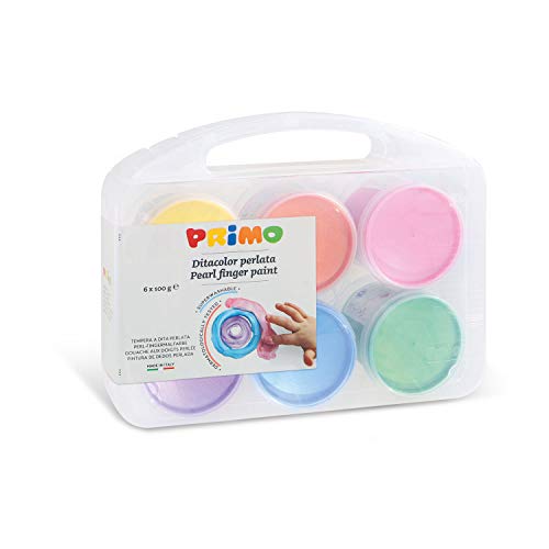PRIMO - Valisette de Couleurs pour enfants +2 Ans, Gouaches à Doigt 100g, 6 Couleurs Pastel pour Peindre sur Papier et Verre, Peintures pour Papeterie et Travaux Créatifs, Testées dermatologiquement