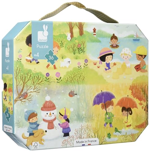 Janod - Puzzle Enfant Les Saisons 36 Pièces - Jeu Educatif Motricité Fine et Concentration - Valisette Poignée - Fabriqué en France et Certifié FSC - Dès 4 Ans, J02602