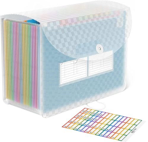 ABC life A4 Rangement Papier Administratif Trieur 26Compartiments, Dossier D'extension,A4 Trieur Document avec Motif de Grille, Portable Valisette Trieur Accordeon,pour le Bureau et L'école (Bleu)