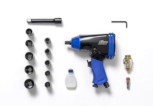 FIAC Clé à Choc Pneumatique à Percussion 1/2" 1086, Pistolet Pneumatique 10 Clés à Douille + Prolongation 100 mm + Mini Lubrificateur + Bouteille en Plastique, Incluse Valisette, Couple 345 Nm, Noire