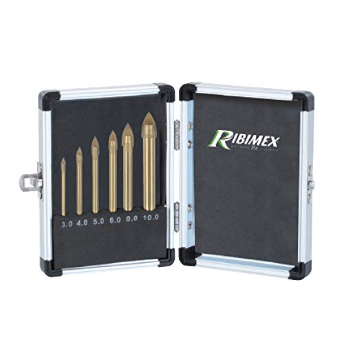 RIBITECH 9942 - Foret à Ailette - Pour Verre et Miroir - 6 Pièces - Valisette de rangement en Aluminium