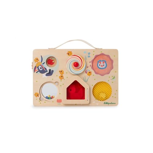 LILLIPUTIENS - Panneau d'Activité Thème Contes - Busy Board pour Bébé - Jouet d’éveil Multi-activités pour bébé - Stimule la motricité Fine - Valisette Pratique à Transporter - Dès 18 Mois - 83510