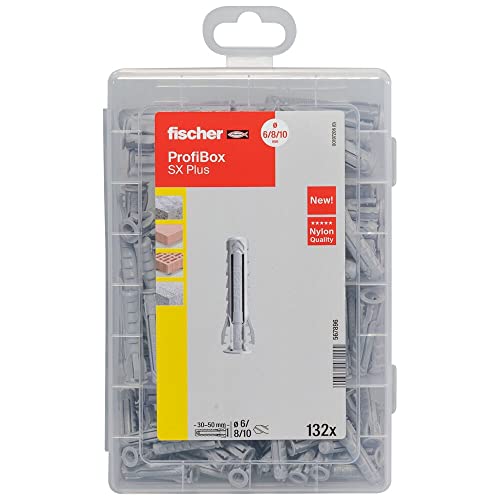fischer - Valisette Profi-Box de 132 pièces Chevilles à Expansion et Multi-matériaux SX Plus (60 SX Plus 6x30, 60 SX Plus 8x40, 12 SX Plus 10x50) avec vis