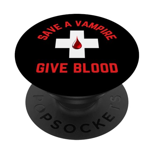 Save A Vampire Give Blood Funny Halloween PopSockets PopGrip Adhésif