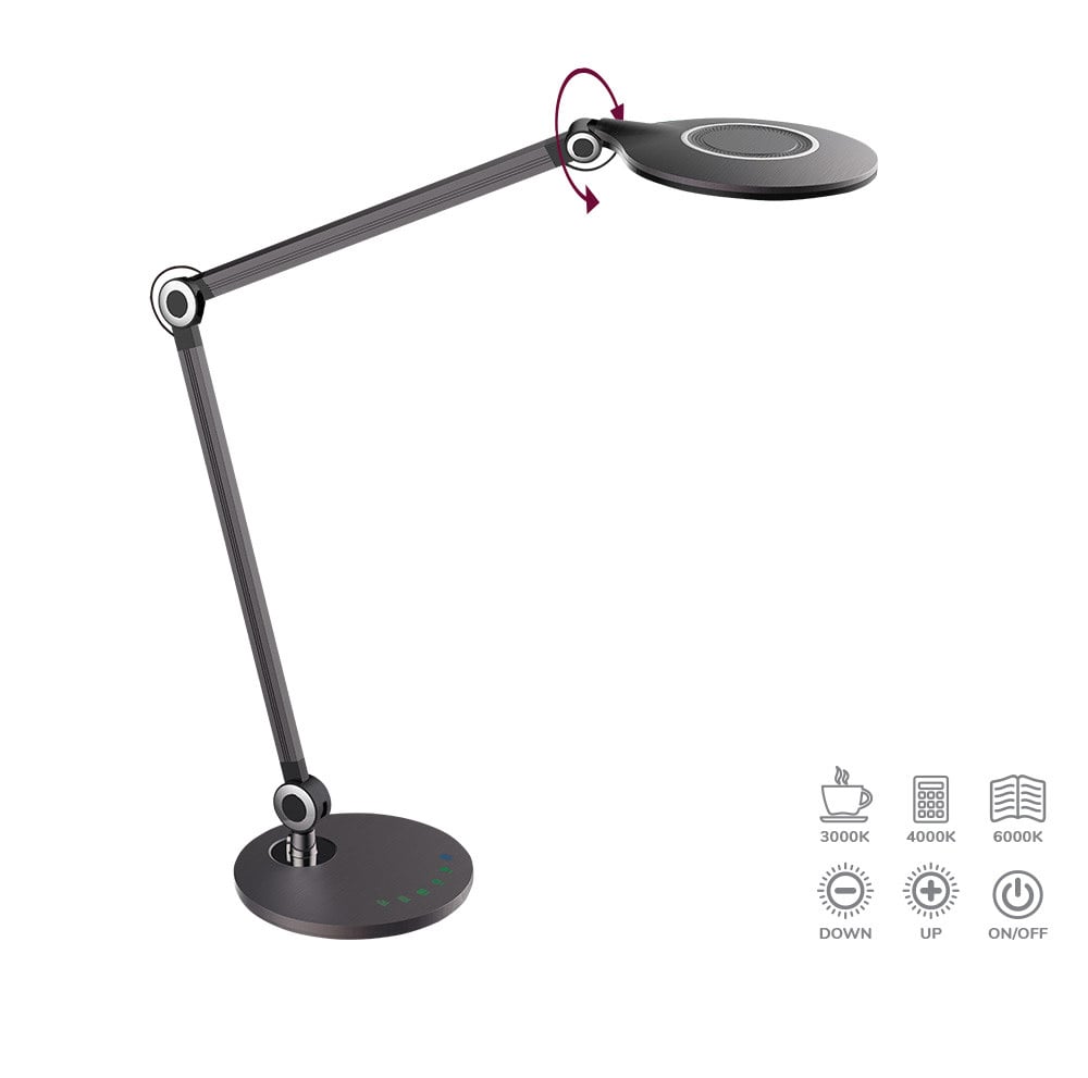Lampe de bureau LED BELTIS 10W, 3000-6300K, noir-noir métallique LxlxH : 54x20x67cm avec variateur à paliers et interrupteur tactile