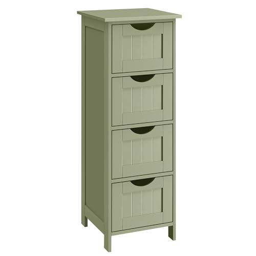 VASAGLE Meuble de Salle de Bain, Armoire sur Pied, avec 4 Tiroirs, 30 x 30 x 82 cm, pour Salon, Salle à Manger, Cuisine, Style Moderne, Vert Olive LHC040C02