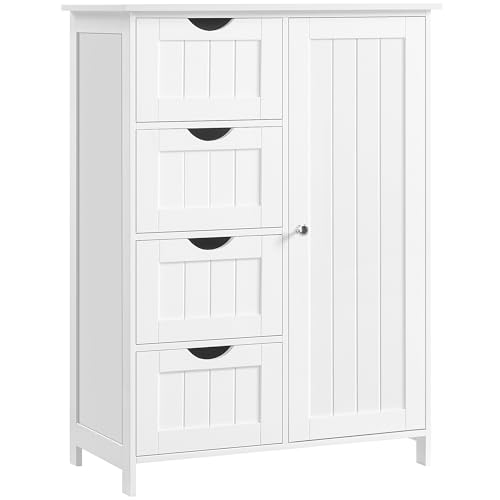 VASAGLE Meuble Salle de Bain Rangement, Armoire Gain de Place, Commode, avec 4 Tiroirs, Placard avec Porte, Étagère Réglable, 35 x 65 x 90 cm, Blanc Nuage LHC042W01