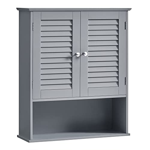 VASAGLE Meuble Mural, Meuble de Rangement Suspendu pour Salle de Bains, Armoire à Pharmacie avec Étagère Réglable, Double Porte et Étagère Ouverte, 20 x 60 x 70 cm, Gris Mystique BBC027P36