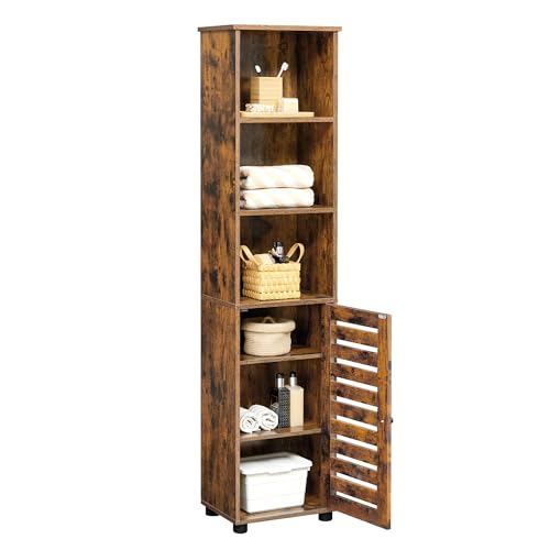 VASAGLE Meuble de Salle de Bain, Étagère de Rangement, Placard Haut, avec 3 Compartiments Ouverts et 2 Étagères Réglables, Salon, Entrée, Marron Rustique BBK160X01