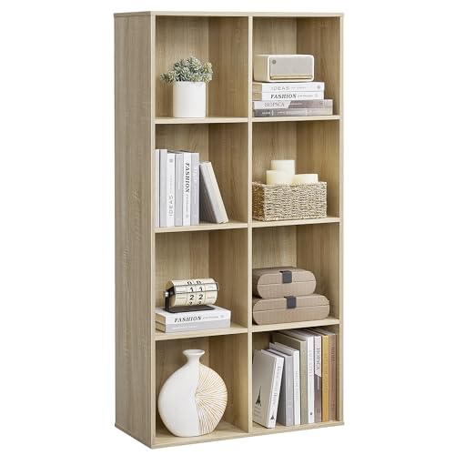 VASAGLE Bibliothèque, Étagère, Meuble de Rangement avec 8 Compartiments, Étagère sur Pied, Bibliothèque Cubique, pour Salon, Bureau, Salle à Manger, Couleur Chêne LBC24NL
