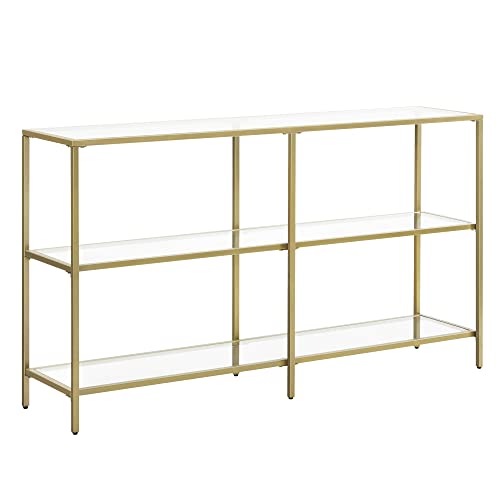 VASAGLE Table Console d’Entrée, Étagère à 3 Niveaux en Verre Trempé, 30 x 130 x 73 cm, Cadre en Métal, Style Moderne, pour Couloir, Salon, Chambre, Doré Métallique et Transparent LGT024A01