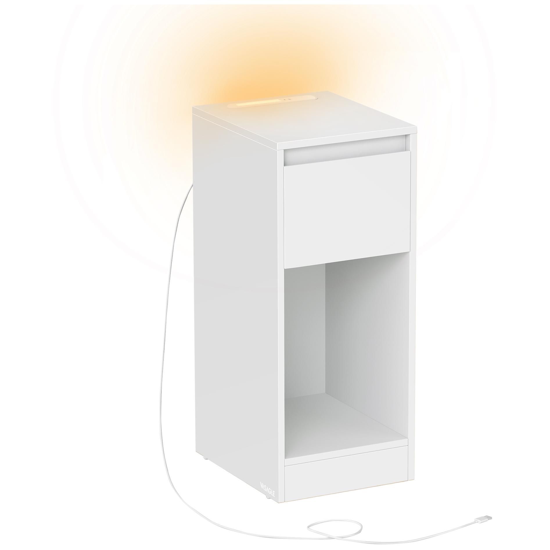 Vasagle Table De Chevet Étroite, Table D'appoint, Avec Éclairage Led, 1 Port Usb-A, 1 Port Usb-C, Tiroir Et Compartiment Ouvert, Pour Chambre, Salon, Blanc Nuage