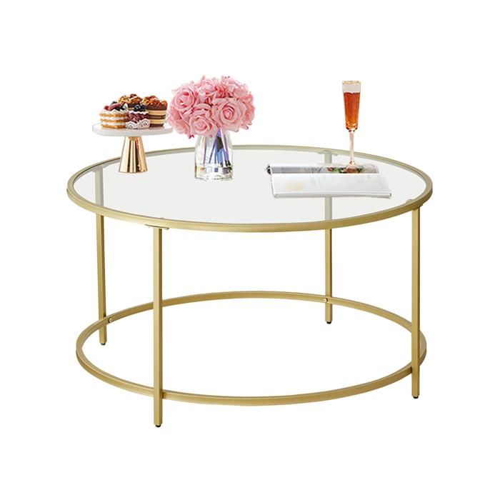 VASAGLE Table Basse Salon Meuble de Salon en Verre Cadre en AER Table Basse Ronde Doré