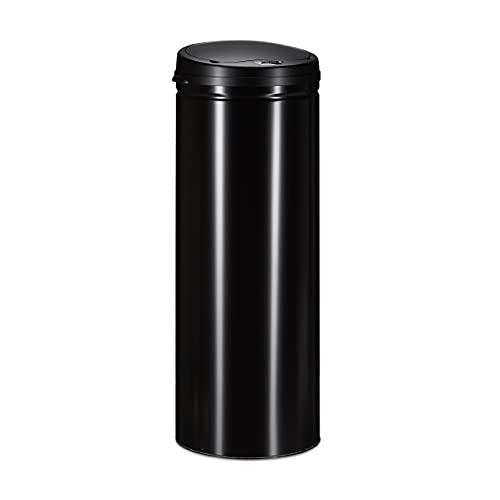 Relaxdays Poubelle en acier 50 litres bac à ordures en métal 80 cm de hauteur 30 cm de diamètre couvercle automatique, noir
