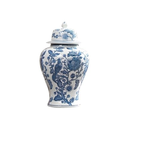 Grand Vase en céramique avec Couvercle, Pot de Gingembre, Vase Bleu et Blanc, Pots décoratifs en céramique Chinoise, Vase Bleu en Porcelaine for Table de Salon(Blue)