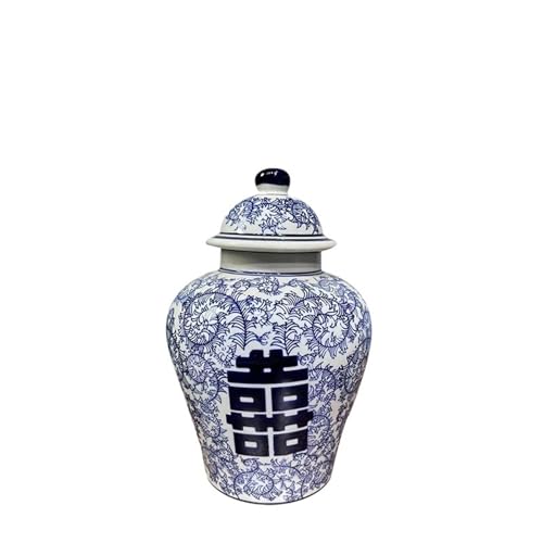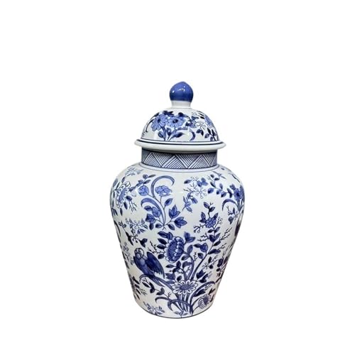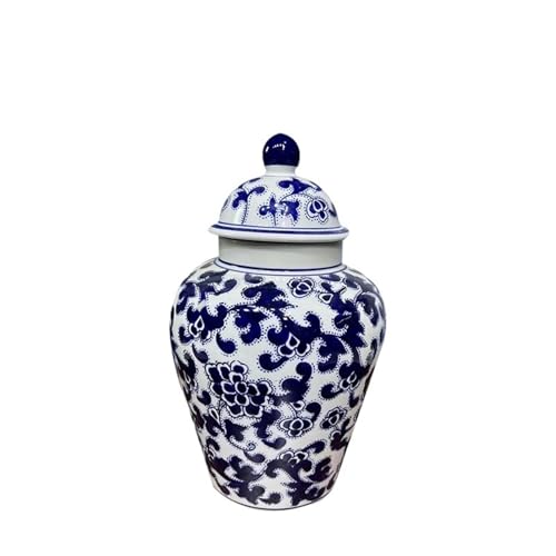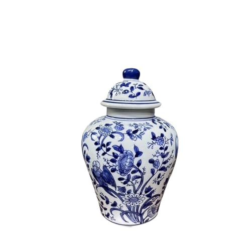 Grand Vase en céramique avec Couvercle, Vase Bleu et Blanc, Pots de Gingembre for la décoration de la Maison, Porcelaine Chinoise, Pot de Temple, Vase de Cuisine, Maison(Blue)