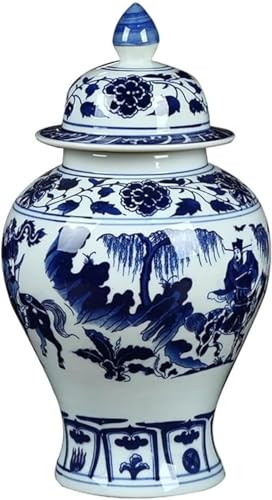 Vase en céramique Antique de 25 x 43 cm en Forme de Pot à Gingembre, Vase en céramique Bleue et Blanche avec Couvercle, Pot décoratif en Porcelaine (L 18 x 31 cm)