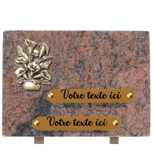 France Tombale Plaque funéraire personnalisée - Granit - assemblée en France - Bronze Vase arums - H 18 X L 25 cm - 2 textes