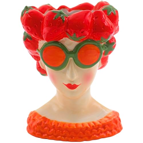 Vase décoratif taille XL, tête de vase, vase pour femme, avec décoration en tête de fraise, vase en céramique multicolore pour femme avec motif fraise, L/H 12 x 13 x 18 cm