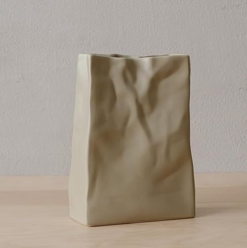WENSHUO Vase en céramique en Forme de Sac en Papier froissé, Grande capacité pour Arrangements Floraux, bibliothèque décorative (café Noix de Coco) Noir, Jaune HP2203061