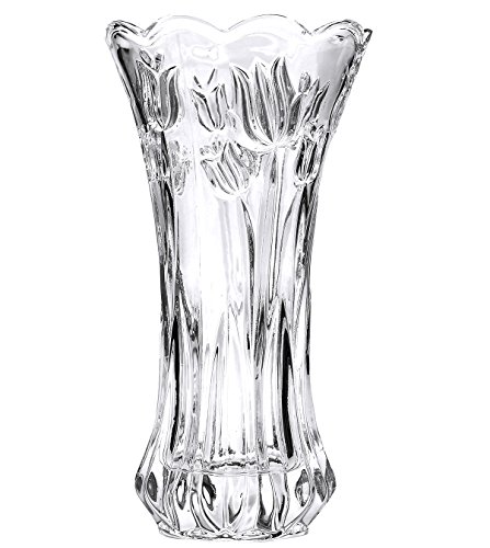 Slymeay Vase à Fleurs en Verre épais Motif Tulipes Grande Taille Décoration d'intérieur, Vase de Mariage ou Cadeau – 23,9 cm de Haut x 12,5 cm de Large, Transparent, avec boîte de Couleur