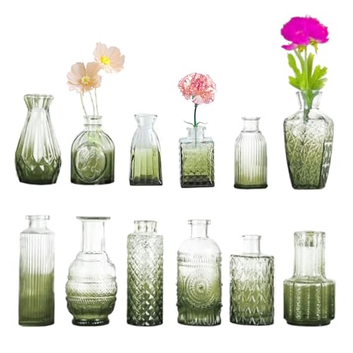 Ensemble De en Verre - Décoration De Table Vintage | 12 Petits À Fleurs pour Centre De Table De Mariage, Décoratifs en Verre, Mini Jardinière, Vase À Bourgeons Transparent Rose Vert,