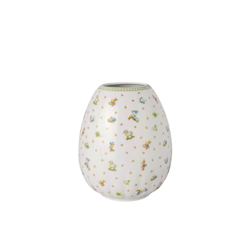 Villeroy & Boch – Easter Delight Vase, Porcelaine Premium, Forme d’œuf Ovale, Motifs de Pâques rétro, détails dorés, Vase printanier décoratif pour Les Fleurs et Les compositions Florales