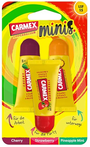 Carmex Minis – Soin des lèvres pour lèvres sèches et gercées, baume à lèvres avec vaseline, vitamine E, cire d'abeille et protection solaire, soin hydratant intense, dans un mini format pratique – (3