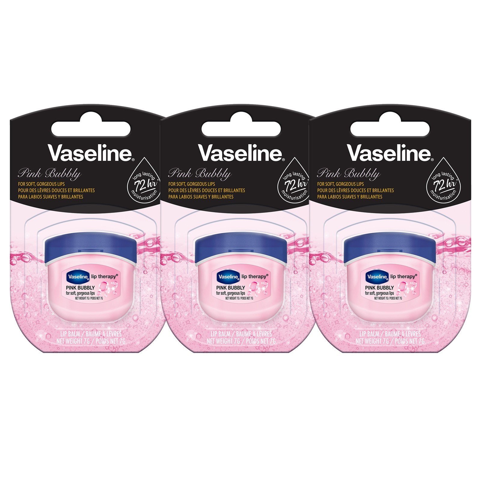 Vaseline Lip Therapy Pink Bubbly | Baume à lèvres nourrissant | Lot de 3 (3x7g)