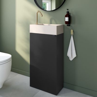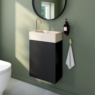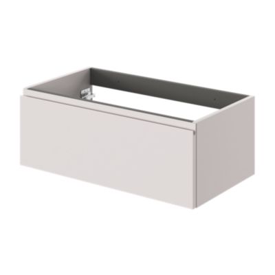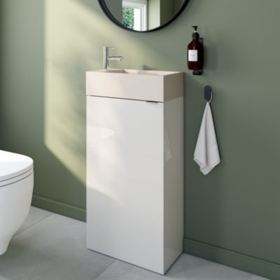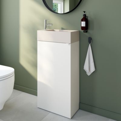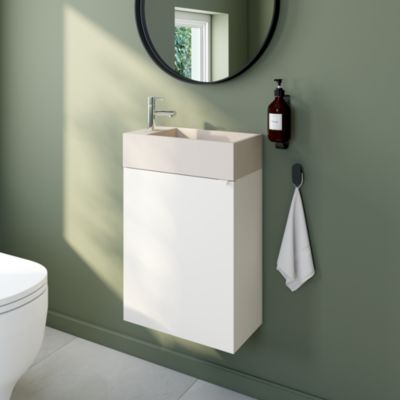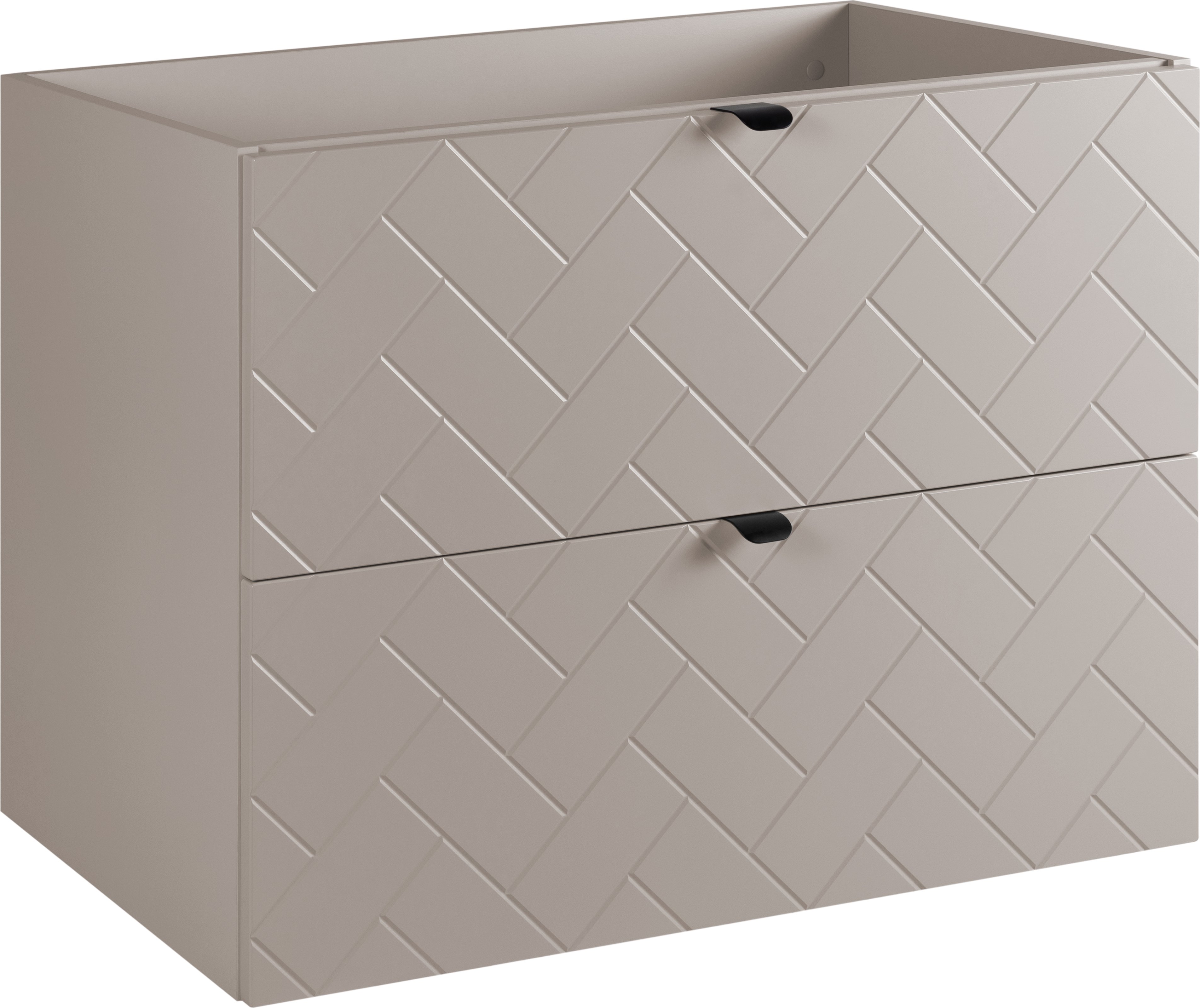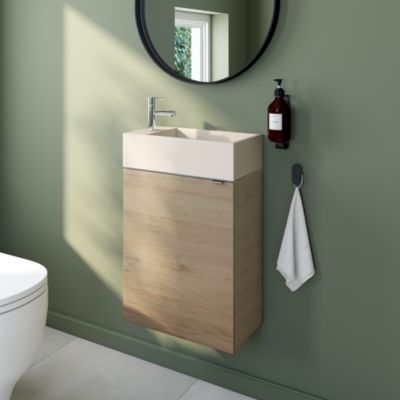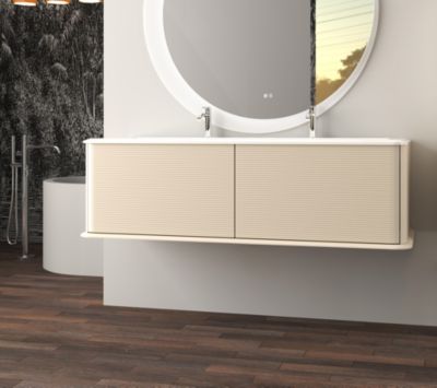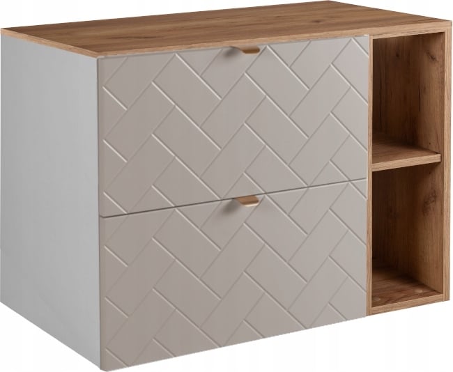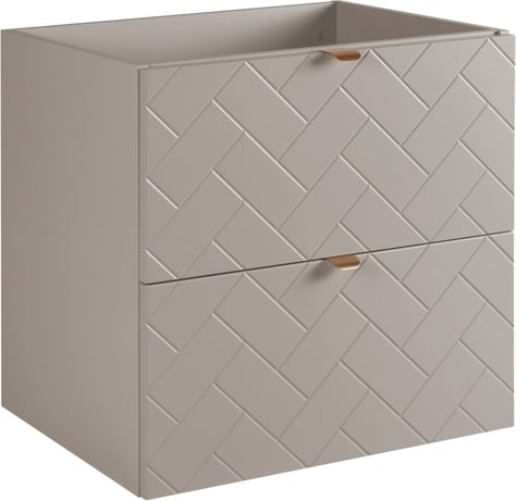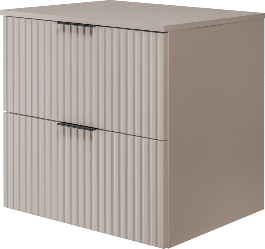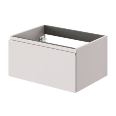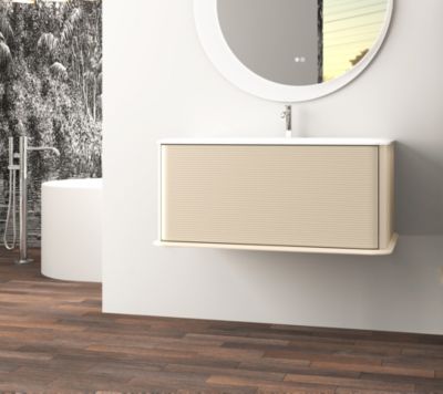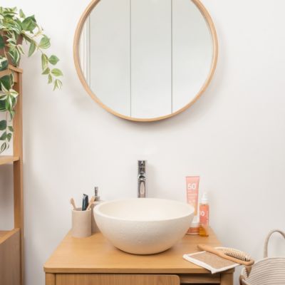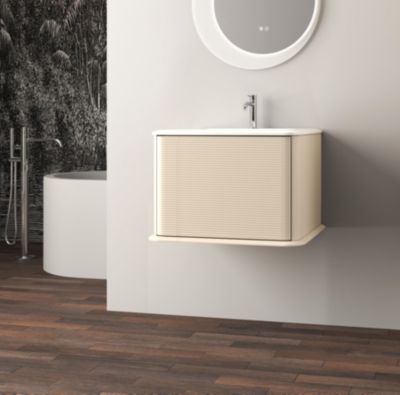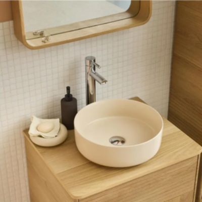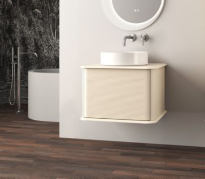 Ensemble aoki : meuble sous vasque à tiroirs 60cm + plan vasque beige + vasque ronde blanche à poser