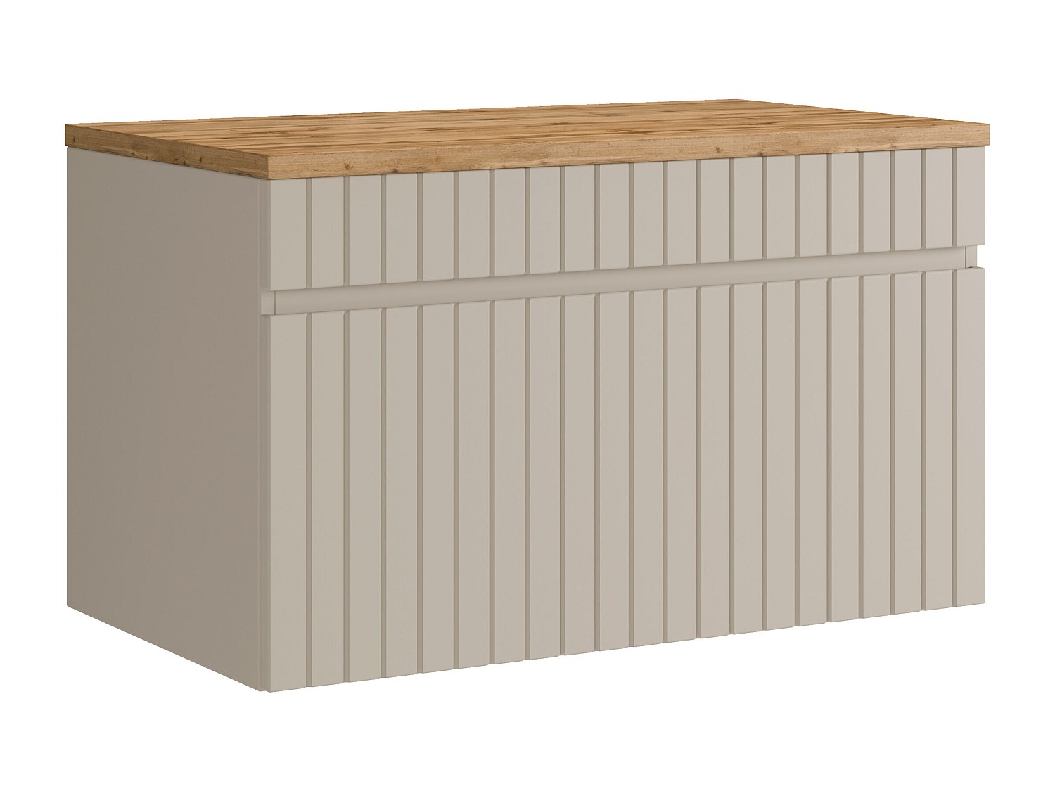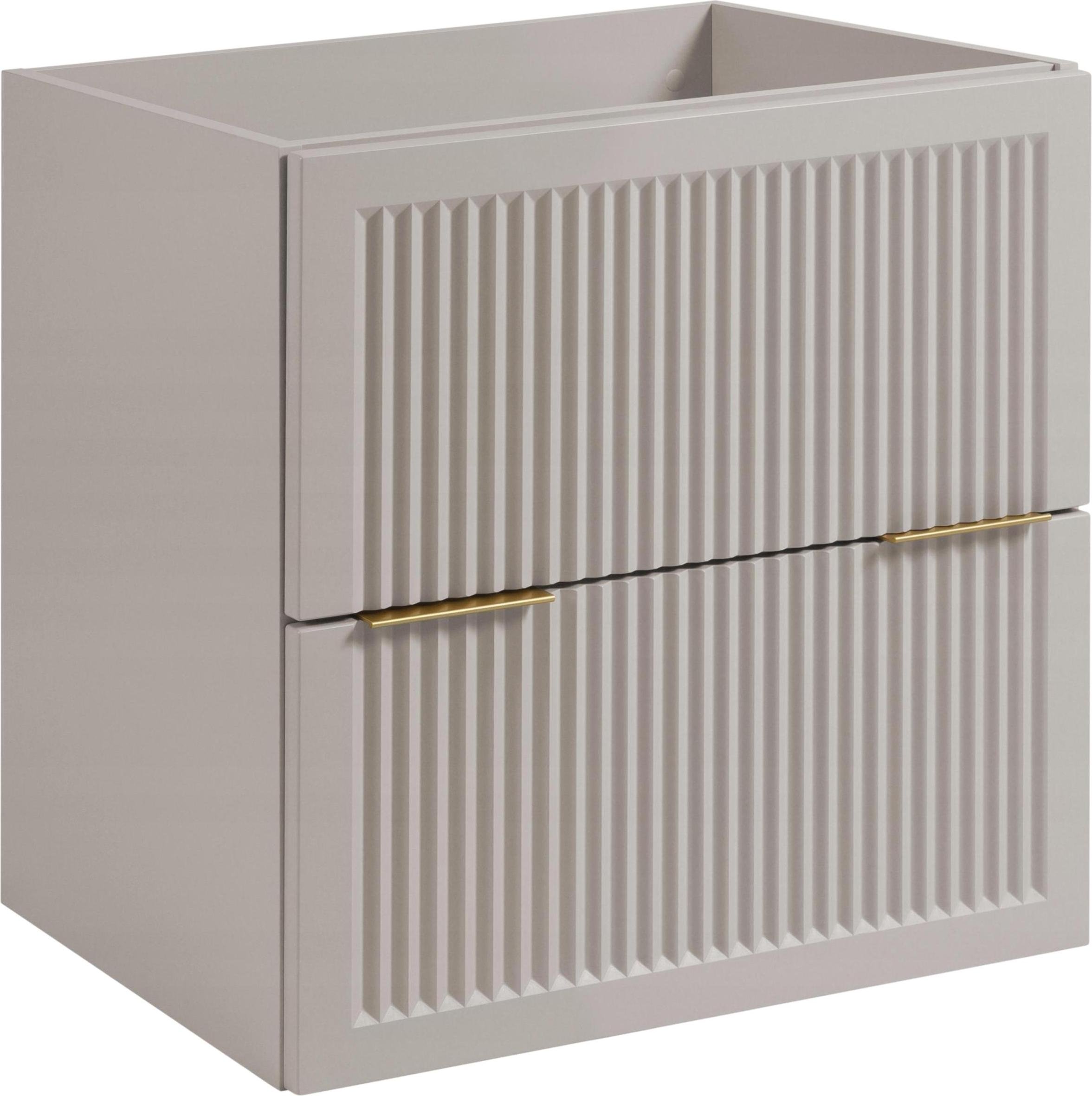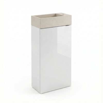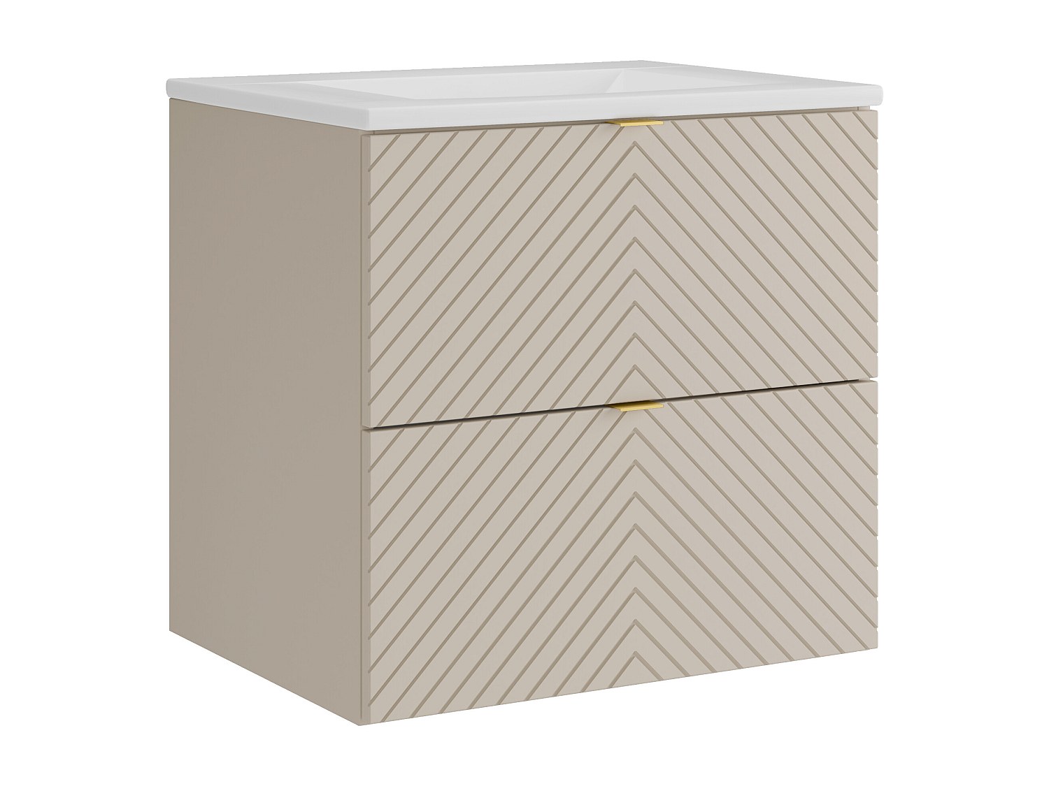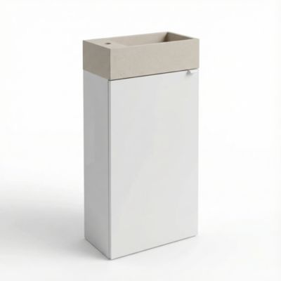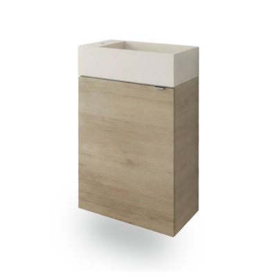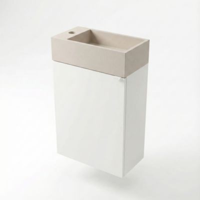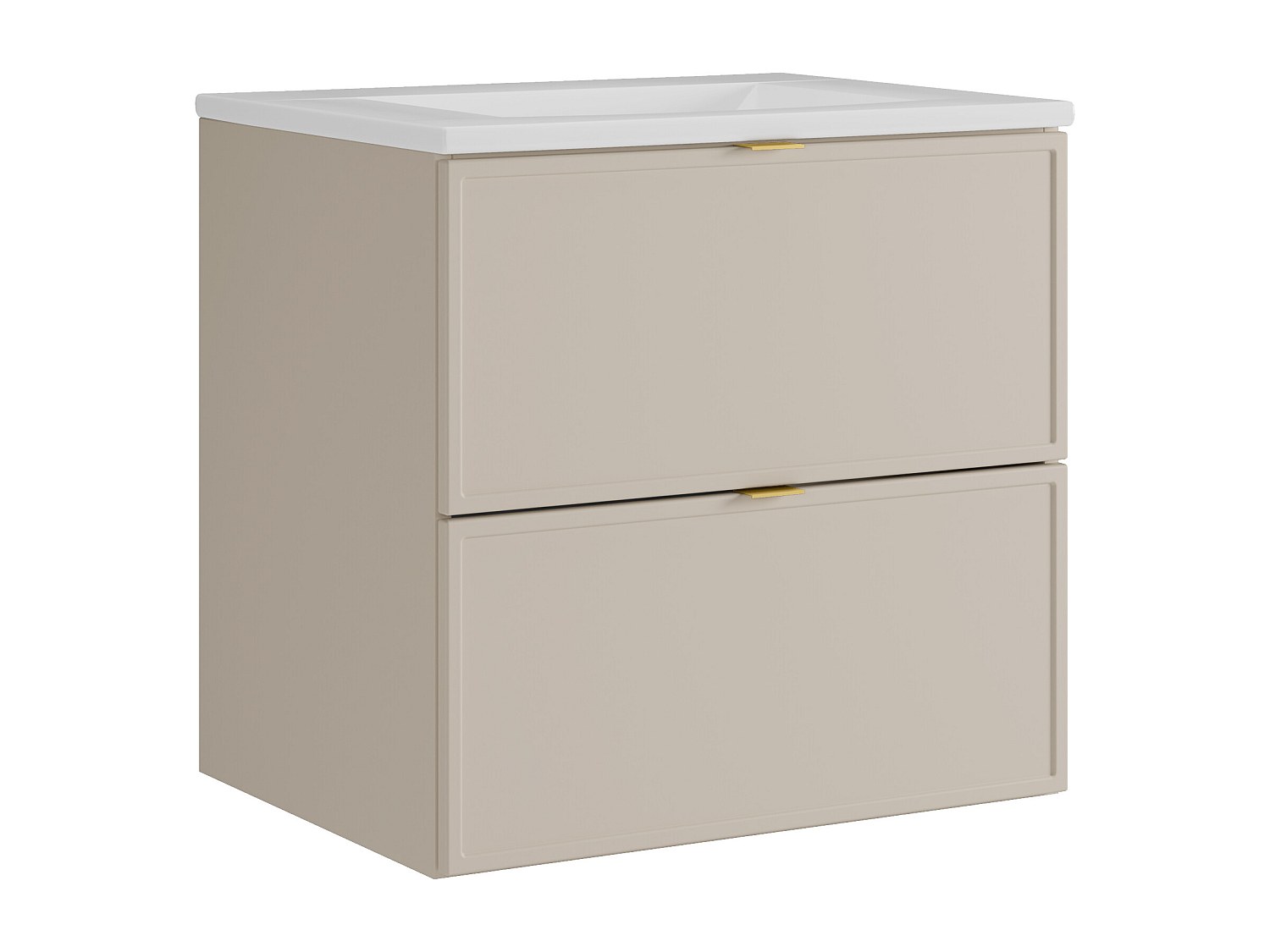Ensemble aoki : meuble sous vasque à tiroirs 60cm + plan vasque beige + vasque ronde blanche à poser