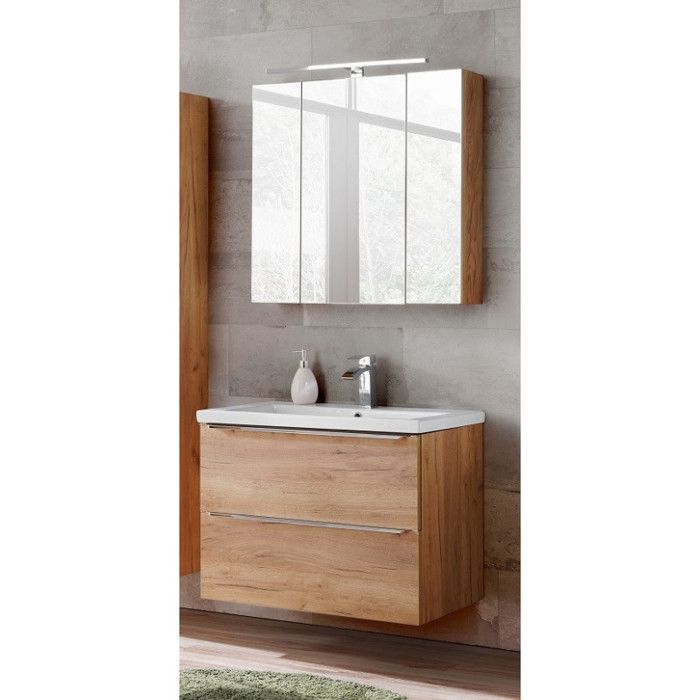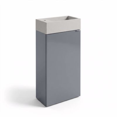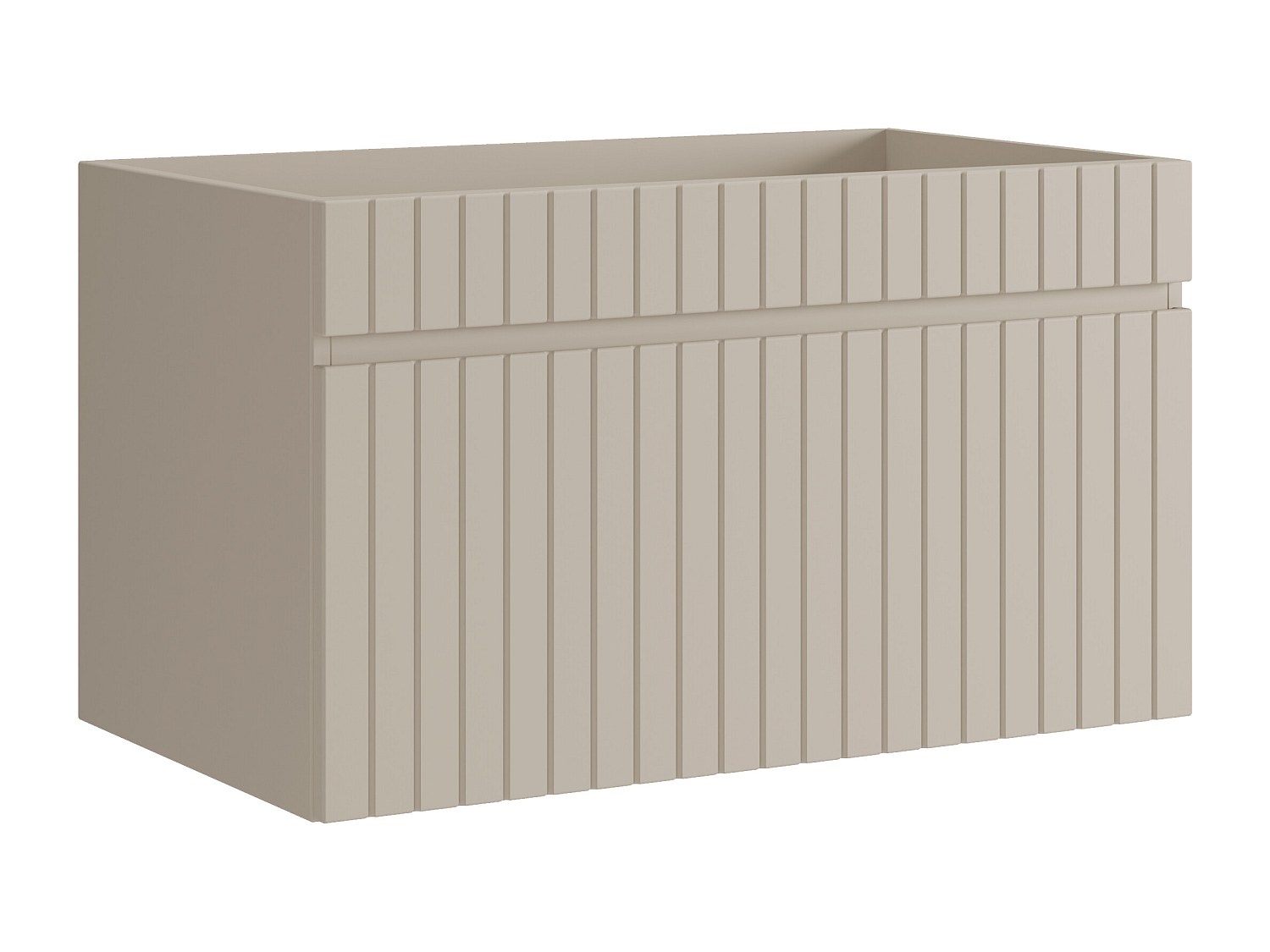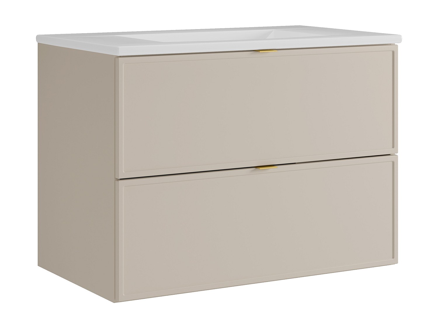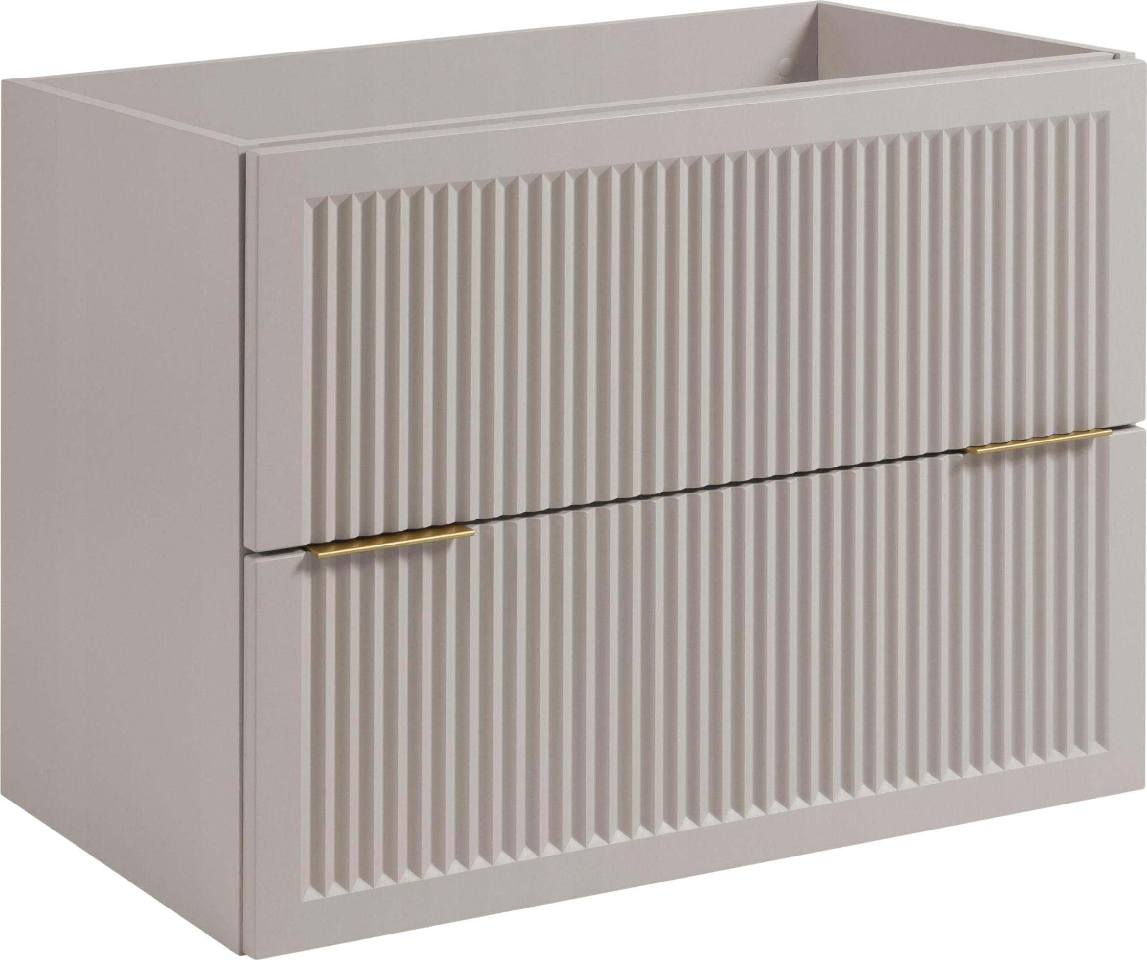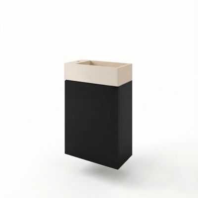 Ensemble aoki : meuble sous vasque à tiroirs 60cm + plan vasque beige + vasque ronde blanche à poser