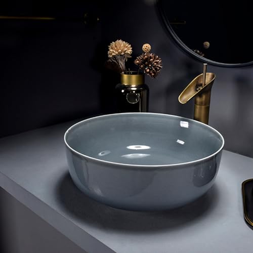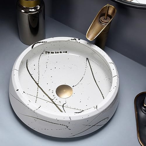 GLETSF Lavabo De Salle De Bain Rond Vasque, Vasque À Poser en Porcelaine Et Céramique, Meuble-Lavabo