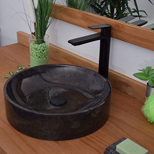Océan Line Vasque Ronde à Poser en marbre Noir, Irina 40×40×10 cm