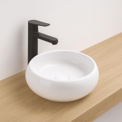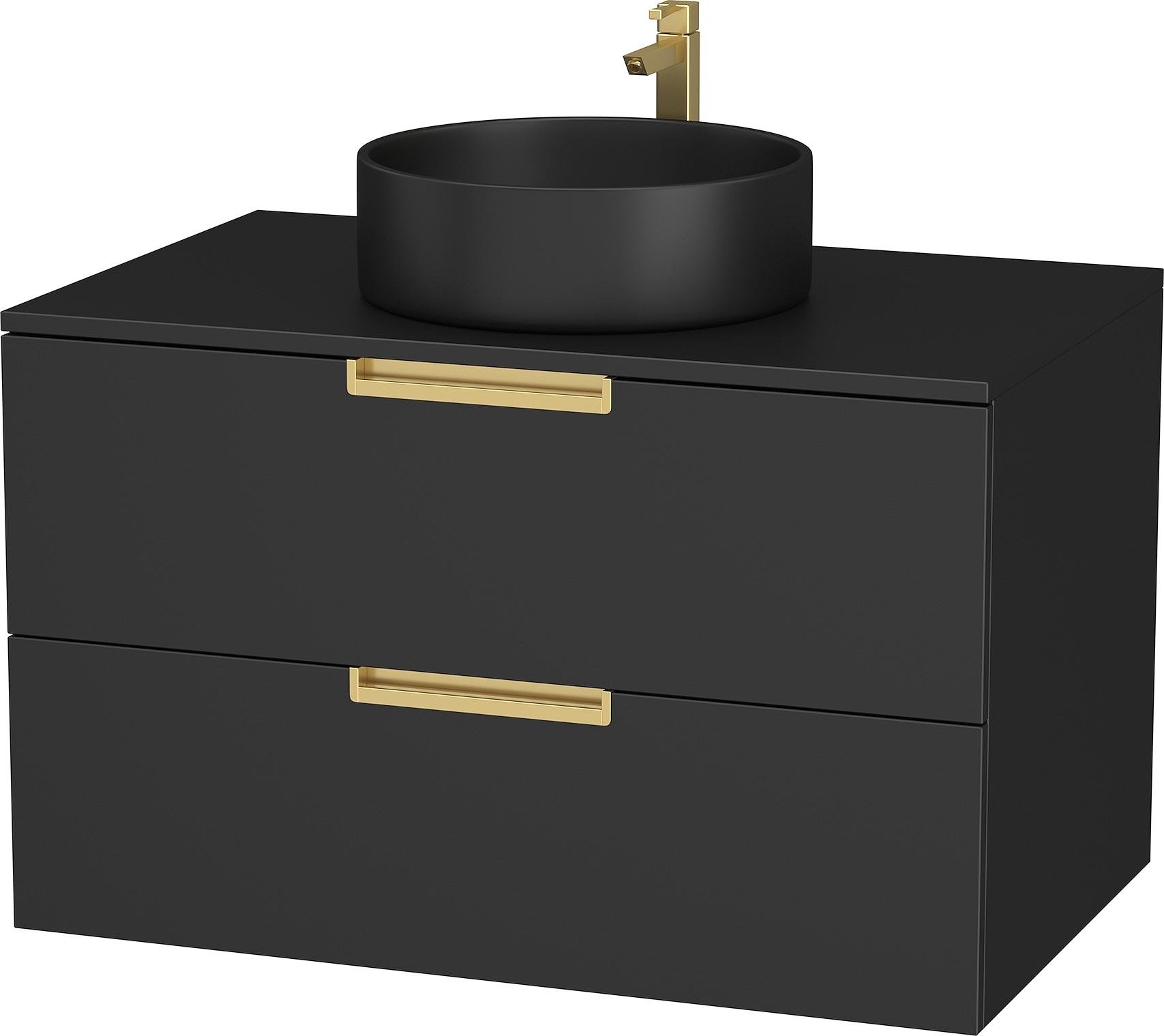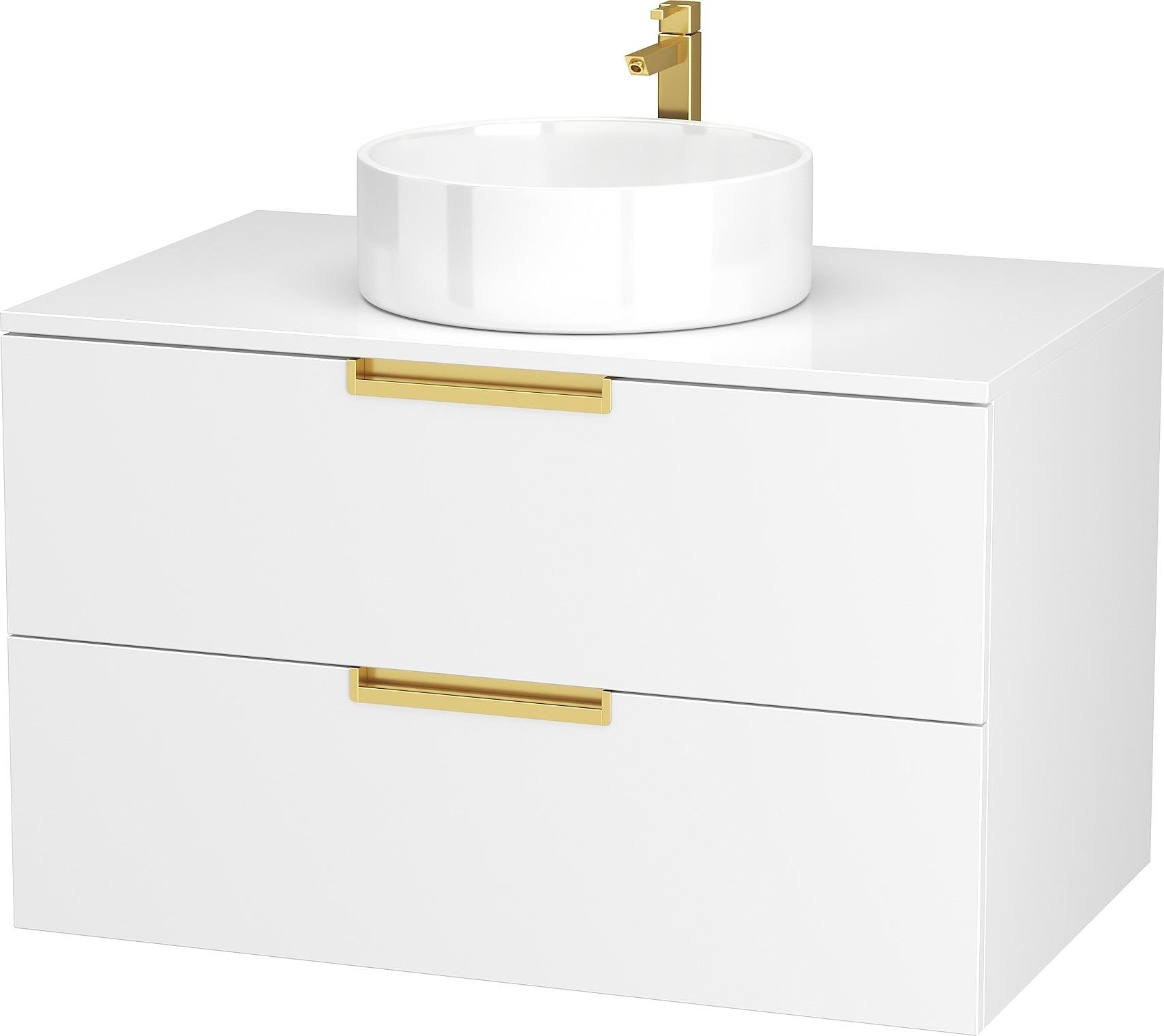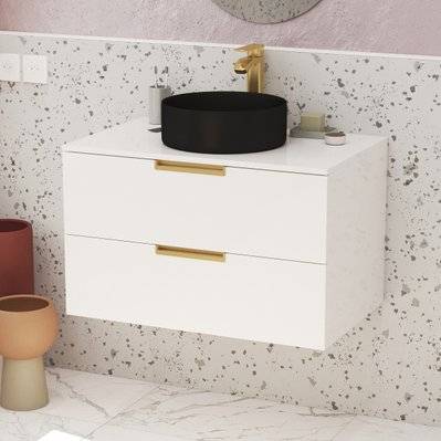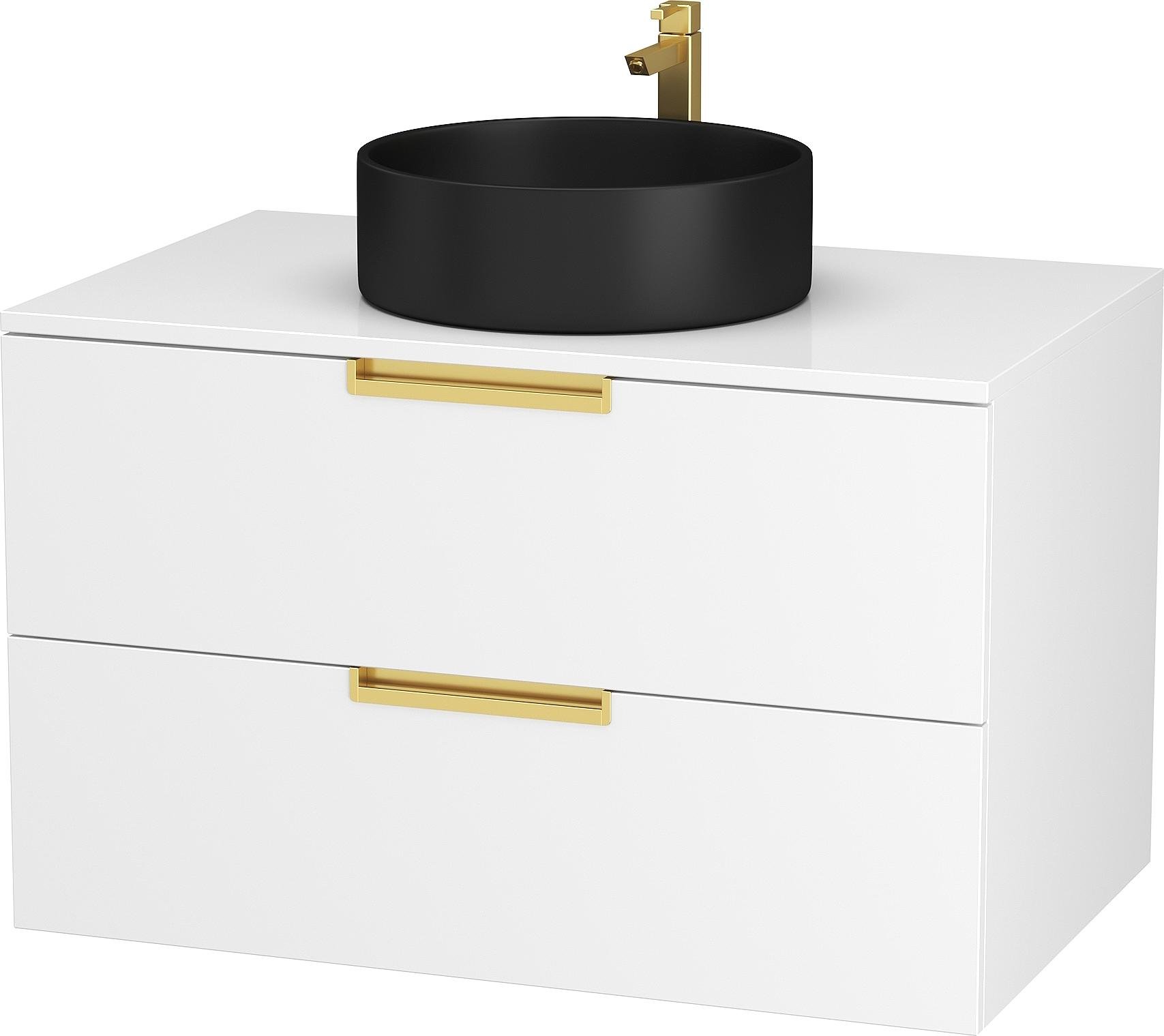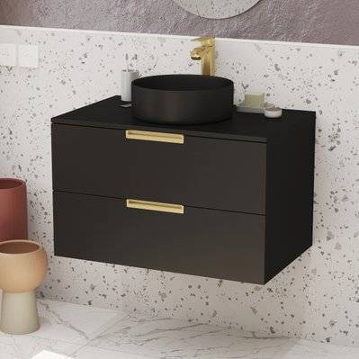 Ensemble aoki : meuble sous vasque à tiroirs 80cm + plan vasque blanc + vasque blanche ronde à poser