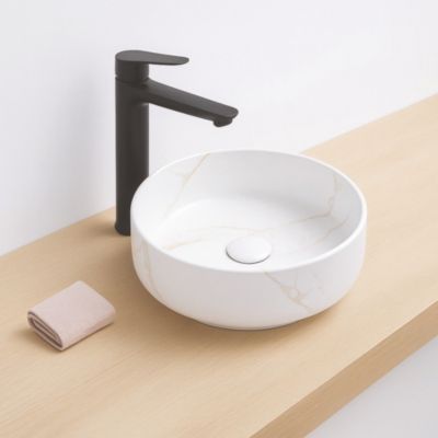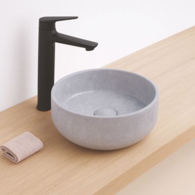 Ensemble aoki : meuble sous vasque à tiroirs 60cm + plan vasque beige + vasque ronde blanche à poser