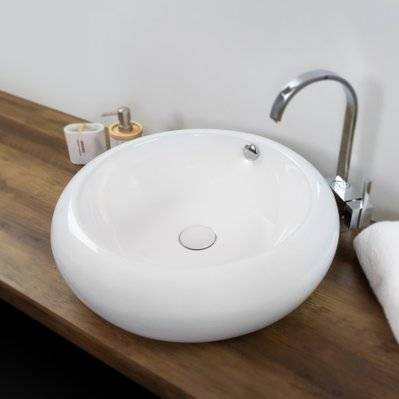 Ensemble aoki : meuble sous vasque à tiroirs 60cm + plan vasque chêne + vasque blanche ronde à poser